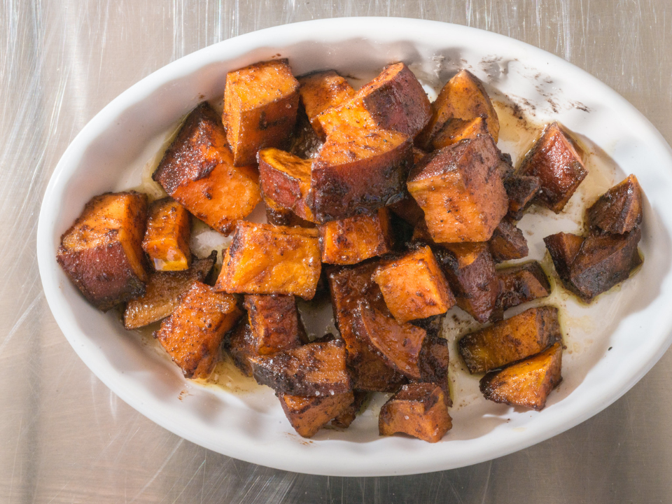 Pour un plateau simple, épluchez et coupez en cubes 2 patates douces moyennes, puis mélangez-les avec 1 cuillère à soupe d’huile d’olive, 1/2 cuillère à café de sel et 1/4 cuillère à café de poivre noir. Rôtir à 425 degrés Fahrenheit pendant 25 à 30 minutes, en retournant une fois pour que les bords soient bien dorés. Servez-les à côté du poulet ou ajoutez-y du poulet râpé après le rôtissage pour un repas rapide sous forme de bol. Une petite pincée de cannelle peut leur donner un goût plus chaleureux.