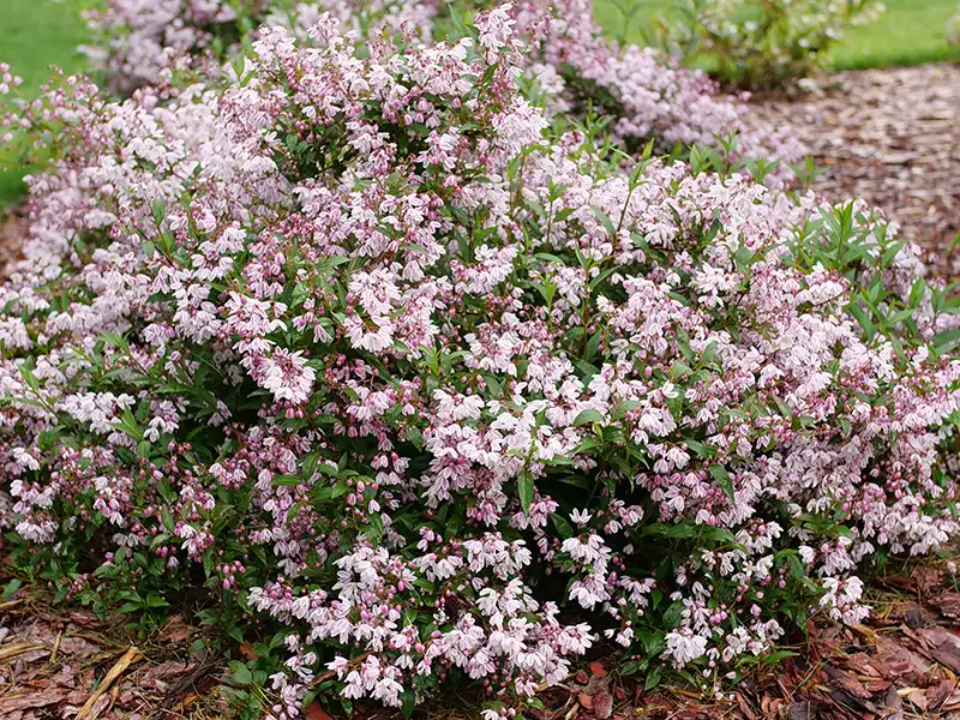 Deutzia Yuki Cherry Blossom est un arbuste bas et étalé qui s’adapte très bien aux plates-bandes et aux petites bordures. Il reste généralement environ 1 à 2 pieds de haut, il n’encombre donc pas les autres plantes et ne bloque pas la vue. Au printemps, les branches se couvrent de fleurs rose tendre qui donnent à l’ensemble de l’arbuste un aspect plein et vivant.