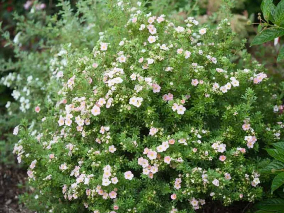 Potentilla Happy Face Pink Paradise est un petit arbuste bien rangé qui fonctionne bien dans les petites cours ensoleillées. Il pousse généralement environ 2 à 3 pieds de haut et de large, ce qui le rend facile à placer dans un lit étroit. Les fleurs roses commencent à la fin du printemps et donnent immédiatement à la plante un aspect joyeux. Ses feuilles sont petites et soignées, de sorte que l’ensemble de l’arbuste garde une forme nette et légère.