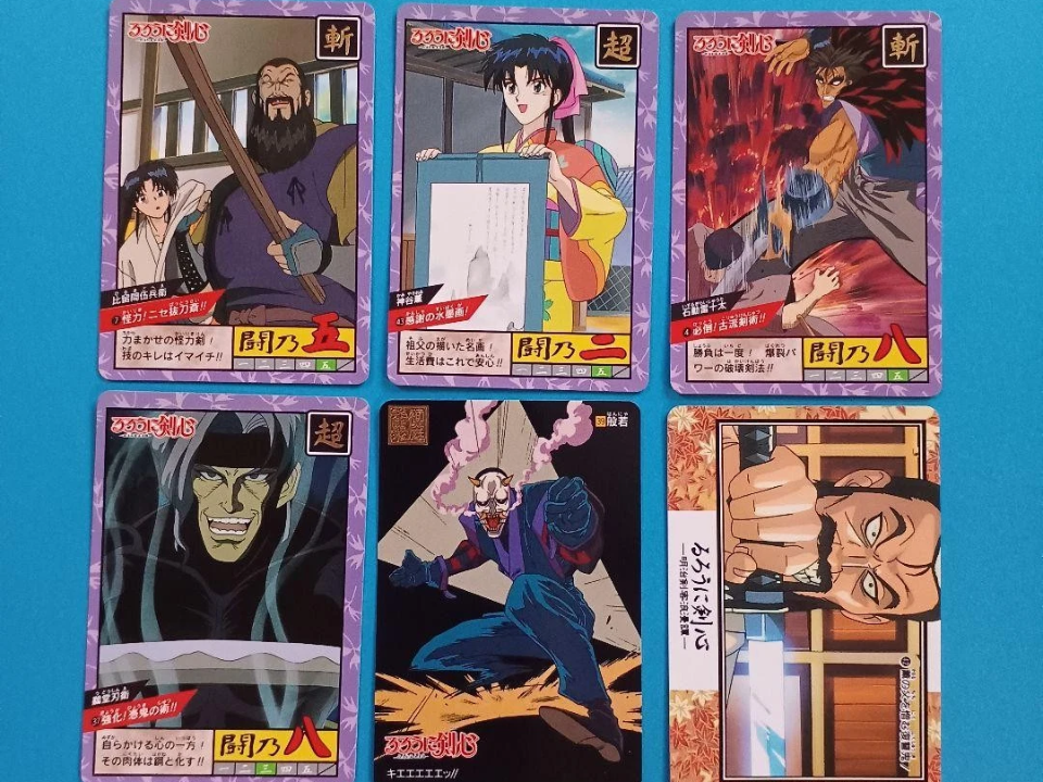 Rurouni Kenshin Carddass a été produit pour la première fois au milieu des années 1990 au Japon, reflétant l’intérêt croissant pour les objets de collection d’anime pendant cette période. Les cartes mettaient en vedette l’épée errante Kenshin Himura, ainsi que Kaoru, Sanosuke et Shishio. De nombreuses cartes comprenaient des finitions brillantes et prisms qui les ont fait ressortir.