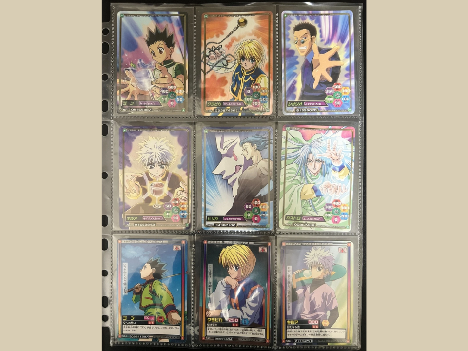 Bandai a produit plusieurs séries Hunter X Hunter Carddass à partir de 2000, présentant Gon, Killua, Kurapika et Hisoka. Les cartes représentaient les premiers arcs tels que l’examen Hunter et la saga de Yorknew City. Les fans ont apprécié le style artistique vibrant qui reflétait étroitement le look de l’anime.