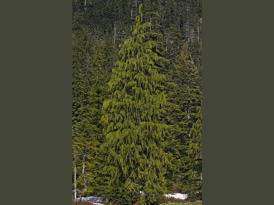 Le cèdre jaune est un conifère à croissance lente que l’on trouve dans les hautes altitudes et les régions côtières du nord-ouest du Pacifique. Il est très prisé pour son bois exceptionnellement résistant à la pourriture, ce qui le rend précieux dans la construction, notamment en milieu maritime. Le cèdre jaune est très sensible aux changements et aux perturbations climatiques, et il ne prospère que dans les conditions protégées et stables des forêts anciennes.