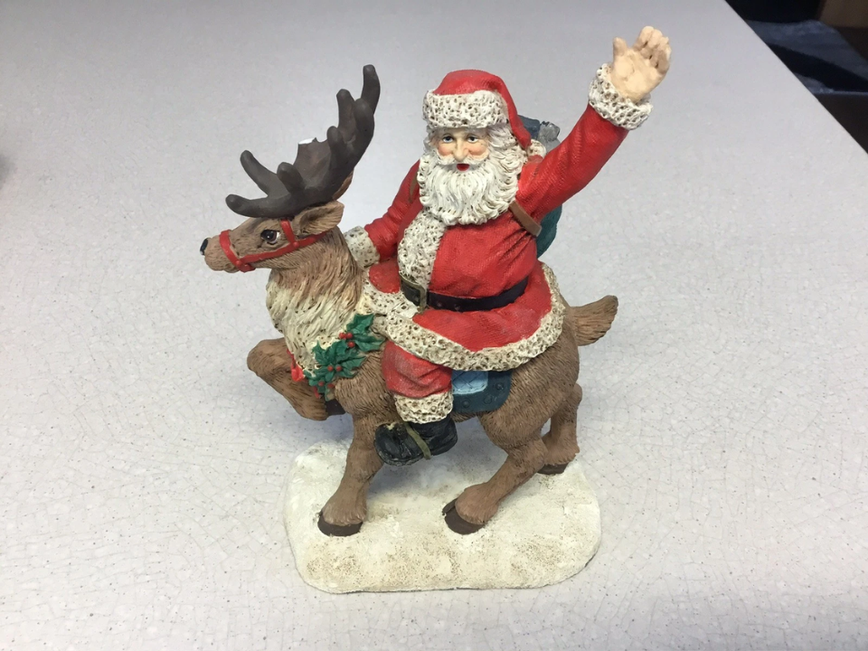 Un Père Noël en résine chevauchant un renne est devenu populaire au début des années 2000, lorsque les figurines en résine détaillées ont attiré l’attention pour leur durabilité. Ces personnages affichent souvent des couleurs riches et des plis de vêtements détaillés qui contribuent à créer une scène festive. Beaucoup présentent le Père Noël tenant un cadeau ou saluant la main, ce qui crée un moment de vacances animé.