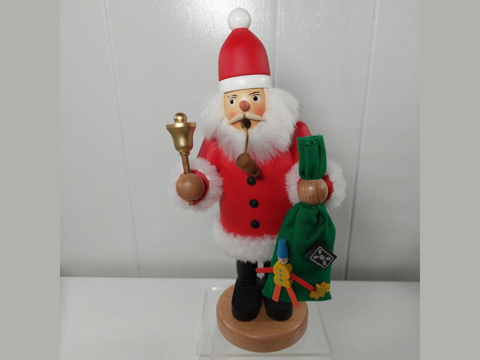 Les figurines de fumeurs traditionnelles en bois d’Allemagne font partie des traditions de vacances depuis de nombreuses générations. Ces figurines s’ouvrent à la taille pour permettre de placer des cônes d’encens à l’intérieur, permettant ainsi à des volutes de fumée de s’élever de la bouche du Père Noël.