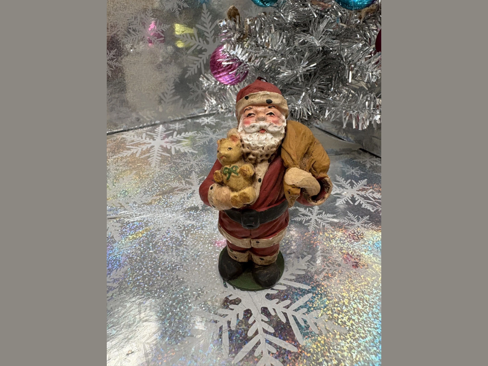 Un Père Noël vintage en céramique des années 1950 apporte souvent un sentiment chaleureux de nostalgie en raison de ses éléments peints à la main et de ses couleurs douces. De nombreux collectionneurs apprécient l’expression douce de la figurine car elle reflète les motifs de vacances de cette époque. Ces pièces étaient généralement placées sur les manteaux de cheminée, c’est pourquoi de nombreuses familles les associent aux célébrations de l’enfance.