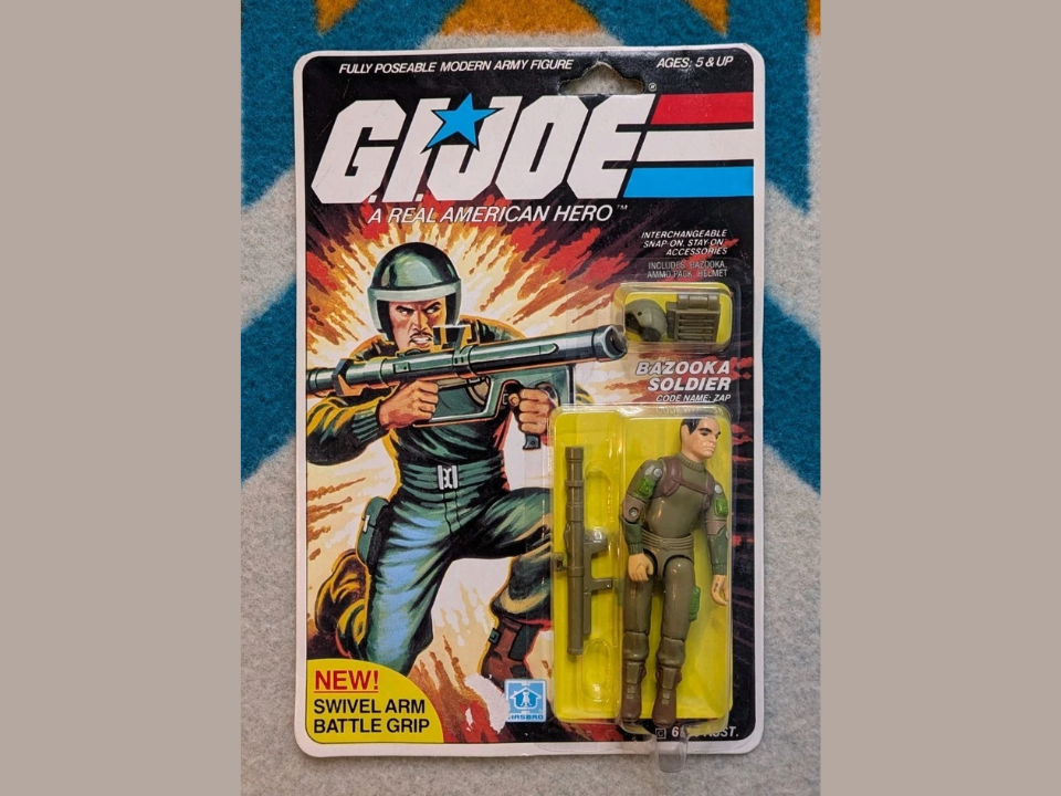 Zap de la ligne GI Joe de 1984 ressemble à première vue à un autre soldat vêtu de vert, mais certaines variantes avec carte ont attiré une attention particulière. Un exemple scellé notable de Bazooka Soldier Zap s’est vendu pour environ 7 950 $ en 2018, prouvant à quel point une variante rare dans son emballage d’origine peut être puissante pour le marché Joe. Les collectionneurs accordent une attention particulière aux dos des cartes, aux marquages du pays d’origine et aux petites différences de texte qui distinguent ces variantes des versions ordinaires.