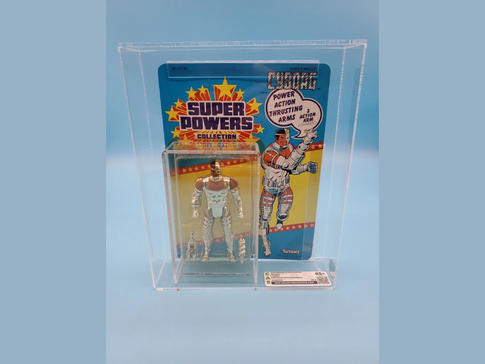 Cyborg de la collection Kenner Super Powers est célèbre pour faire partie de la fin de la troisième vague, qui a vu une baisse de la production et des commandes en magasin. Au moment où il atteignit les étagères, la file d’attente s’estompait, de sorte que moins de personnages scellés survécurent dans les placards et les greniers. Les sites de suivi montrent que les figurines Cyborg sur carte se situent en moyenne autour de 1 100 dollars, et certains exemples de haute qualité poussent plus haut, tandis que les figurines en vrac se vendent souvent entre 500 et 600 dollars selon l’état et les accessoires.