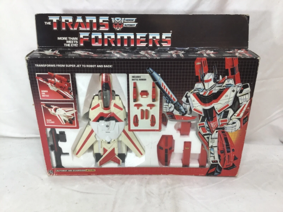 Jetfire est un autre favori du G1 qui montre un énorme écart de prix entre un robot en vrac et un autre qui se trouve toujours dans sa boîte de fenêtre d’origine. Le jouet a commencé sa vie en tant que version sous licence d’un design japonais Valkyrie, et sa grande taille et son plastique blanc signifient que l’usure des étagères et le jaunissement sont courants une fois la boîte disparue. Les dossiers d’enchères et les guides de prix montrent que les figurines Jetfire en boîte de haute qualité peuvent atteindre des valeurs supérieures à 20 000 $ dans un état très solide et scellé.