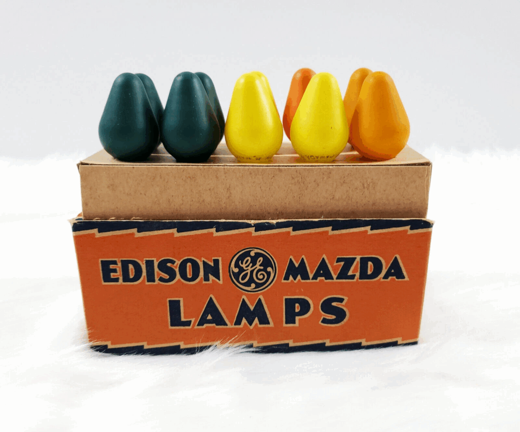 Au cours des années 1930 et 1940, GE Mazda a produit des ampoules de Noël précoces que les collectionneurs recherchent encore aujourd’hui. Celles-ci se présentent souvent sous forme d’ampoules en vrac, parfois en petits lots, et elles sont appréciées pour leur riche couleur de verre. Le charme des vacances d’antan vient de la forme simple et du fait que le verre est la star et non le boîtier. Une estimation réaliste du marché pour un petit terrain de travail est d’environ 25 $ à 60 $, selon la couleur et l’état. Vous pouvez les trouver en remplacement de cordes vintage ou comme ampoules d’affichage dans des bols et des bocaux.