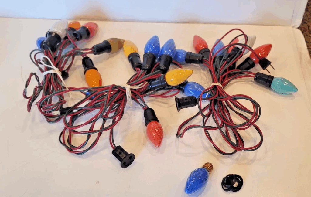 Ces brins sont souvent plus beaux lorsqu’ils sont drapés de manière lâche au lieu d’être enroulés étroitement. Les gens les aiment aussi pour les arbres en aluminium, car l’espacement permet à chaque ampoule de se démarquer. Vous voudrez vérifier les clips ou les prises d’origine si vous en achetez un d’occasion. Si le fil est livré avec sa boîte et ses inserts, il a tendance à se vendre plus rapidement. Pour l’affichage, même un fil qui ne fonctionne pas peut toujours sembler spécial lorsque l’emballage est conservé.