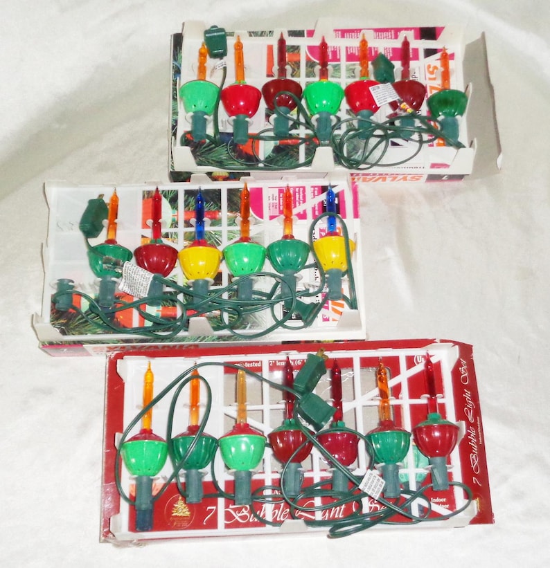 Ceux-ci sont particulièrement jolis sur un petit arbre de table où vous pouvez voir clairement les bulles. Les collectionneurs aiment les sets qui ont encore leurs clips et leurs inserts de boîte d’origine. Si les bulles se déplacent lentement ou de manière inégale, cela peut quand même être normal selon l’ampoule. Ils photographient également bien, ce qui les rend populaires pour les articles de décoration de vacances. Un ou deux brins peuvent instantanément donner à une pièce cette lueur hivernale familière.
