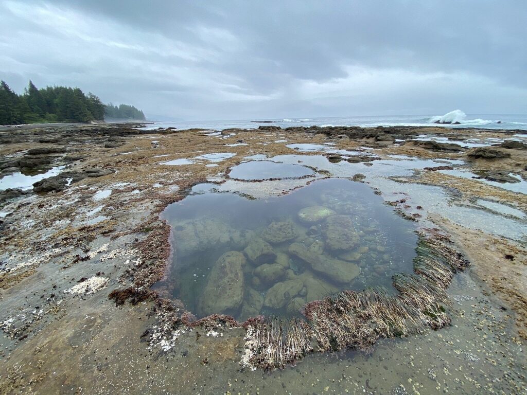 Botanical Beach est connue pour ses bassins de marée, et la fin de l’hiver peut rendre toute la côte encore plus sauvage et belle. Le sentier jusqu’au rivage n’est pas long et vous pouvez le parcourir à un rythme tranquille avec de nombreuses pauses. À marée basse, les plateaux de grès se remplissent de bassins remplis de vie marine. C’est un endroit où vous pouvez passer beaucoup de temps sans avoir besoin de marcher loin une fois arrivé.