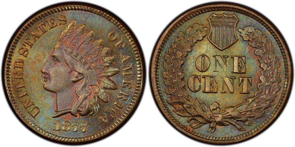 Les gens négligent souvent cette date car les cents Indian Head sont courants dans les anciennes collections. Pourtant, le 1877 a un taux de survie légèrement inférieur, ce qui lui confère un intérêt supplémentaire. Une version détaillée et nette peut constituer un point fort dans un jeu de caractères. L’état et la présence de la couleur d’origine sont très importants lors de l’estimation de la valeur. Les marchands et les collectionneurs surveillent cette année lorsqu’ils trient les pièces de monnaie plus anciennes.