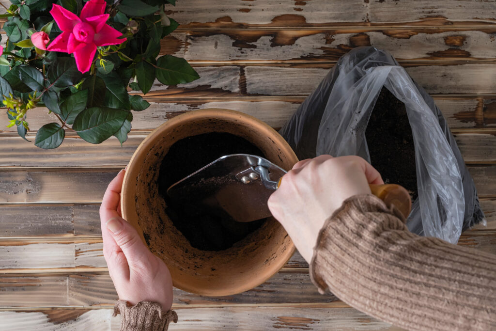 Retirez la plante de son pot et vérifiez les racines si vous soupçonnez ce problème. Coupez toutes les sections sombres ou pâteuses et rempotez la plante dans un sol frais. Utilisez un pot bien drainé pour éviter que le problème ne revienne. Après le rempotage, gardez le sol légèrement humide plutôt que détrempé.