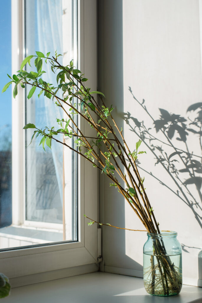 Un faible ensoleillement amène les plantes à se diriger vers la fenêtre la plus proche. Au fil du temps, les tiges se plient dans une direction. Vous remarquerez peut-être que le pot s’incline légèrement à mesure que la plante se déséquilibre. Les feuilles près de la fenêtre semblent souvent plus fortes que celles du côté opposé.