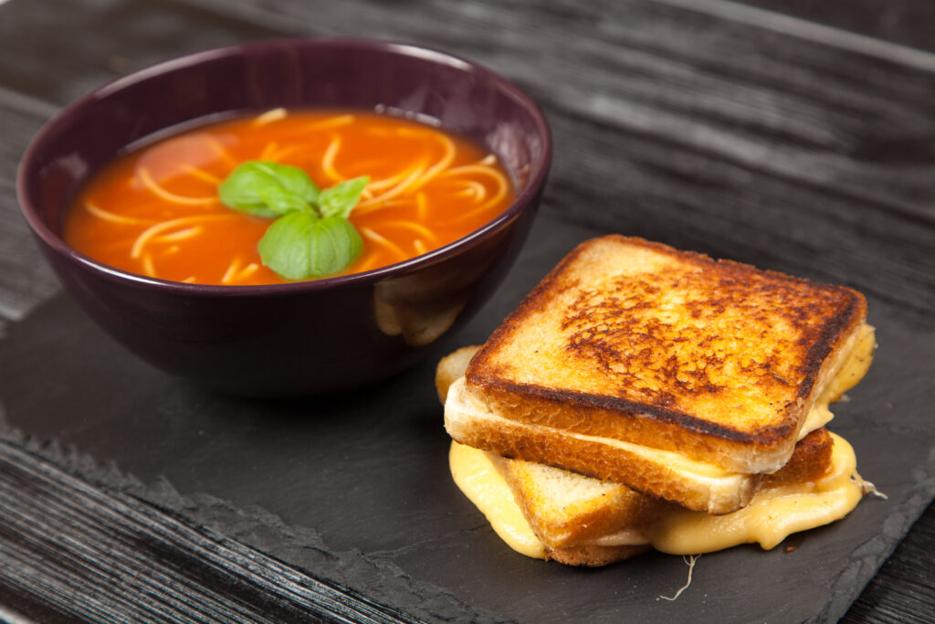 Les bâtonnets de fromage grillé sont faciles à tenir et les enfants peuvent les tremper sans jongler avec un sandwich entier. La soupe aux tomates transforme le repas en un jeu de dunk, qui garde la table animée. C’est une nourriture réconfortante qui reste toujours amusante.