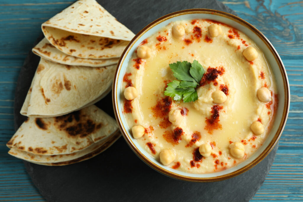 Celui-ci fonctionne bien lorsque les enfants veulent grignoter au lieu de s’asseoir devant une grande assiette. Les triangles de pita sont robustes, ils se creusent donc sans s’effondrer. Offrir du houmous et du ranch vous donne une trempette familière et une légèrement nouvelle dans le même repas.