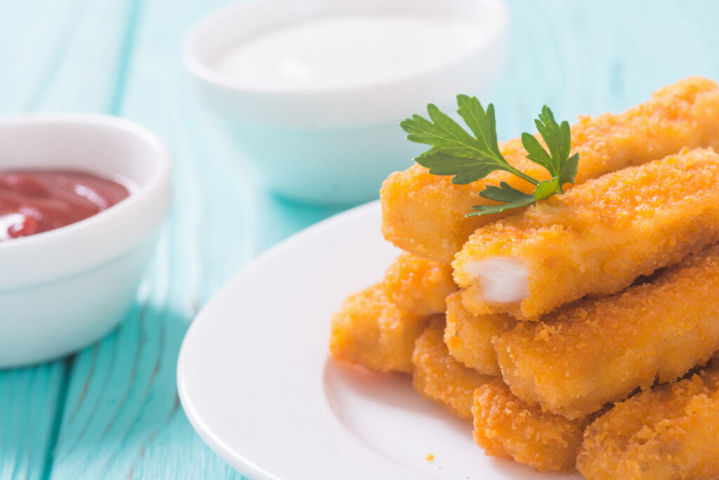 Trempettes de bâtonnets de poisson avec trempette au tartare et au ketchup