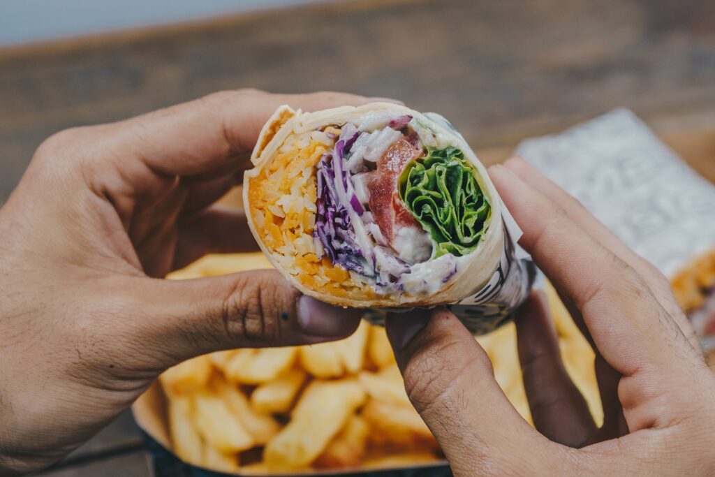 Burritos de petit-déjeuner emballés avec des légumes
