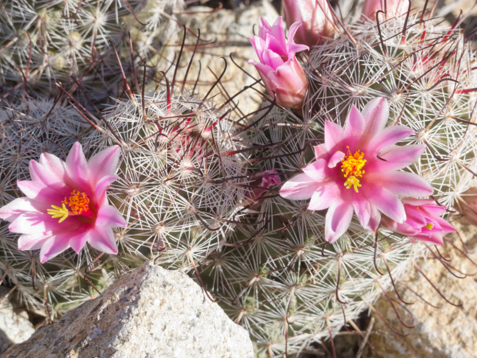 De la fin du printemps au début de l’été, le Mammillaria grahamii produit de belles fleurs roses, qui mettent encore plus en valeur le contraste des couleurs avec sa surface épineuse. Ce cactus est souvent recherché par les collectionneurs en raison de sa rare combinaison d’esthétique et de robustesse. Il pousse mieux dans un sol bien drainé et nécessite relativement peu d’entretien lorsqu’il bénéficie d’un ensoleillement suffisant.