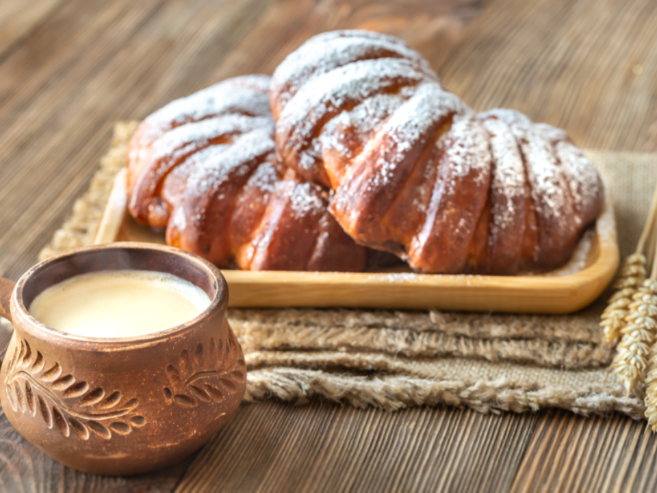Pour les petits pains, remplissez la pâte achetée en magasin ou faite maison avec la crème anglaise préparée. Cuire au four à 350°F pendant 15 minutes jusqu’à ce qu’ils soient légèrement dorés. Pour le thé au lait, faites infuser 2 sachets de thé noir dans 1 tasse d’eau chaude pendant 5 minutes. Faites chauffer 1 tasse de lait et mélangez-le avec le thé. Sucrer légèrement si vous le souhaitez. Servir les deux chauds.
