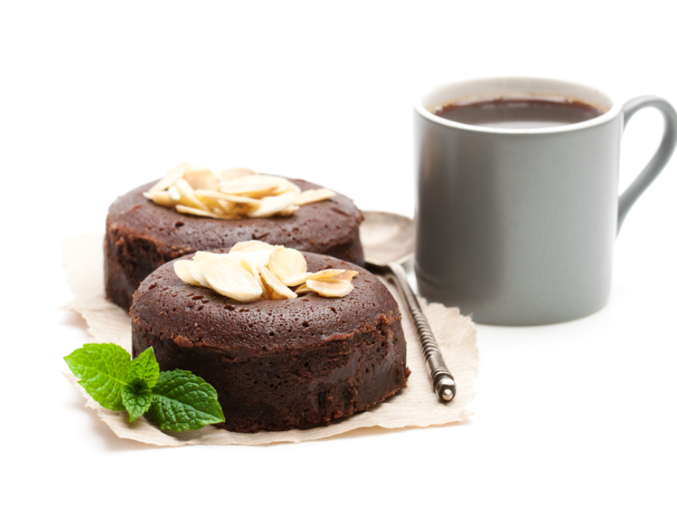 Pour le gâteau, mélangez 1 tasse de beurre, 1 tasse de sucre, 4 œufs, 1 tasse et demie de farine et une demi-tasse de cacao en poudre. Cuire au four à 325°F pendant 55 minutes. Pour la boisson, faites chauffer 2 tasses de lait d’amande avec 2 cuillères à soupe de cacao en poudre et 2 cuillères à soupe de sucre. Remuer jusqu’à consistance lisse et chaude. Servir ensemble. Laissez le gâteau refroidir avant de le trancher.