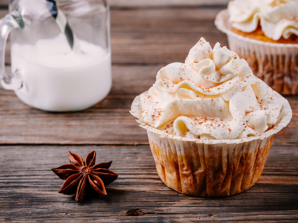 Lait de rose tiède avec cupcakes à la vanille
