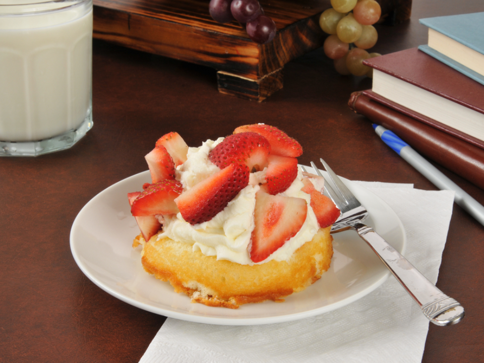 Lait chaud aux fraises avec shortcake aux fraises