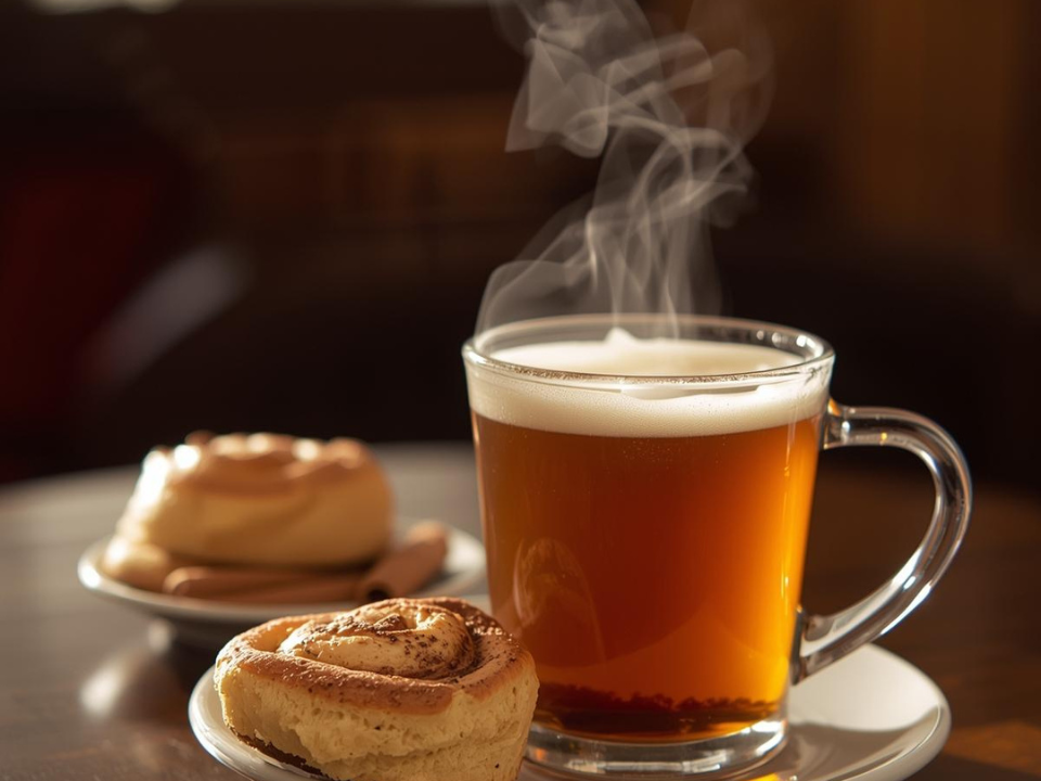 Cidre de pomme chaud avec brioches à la cannelle