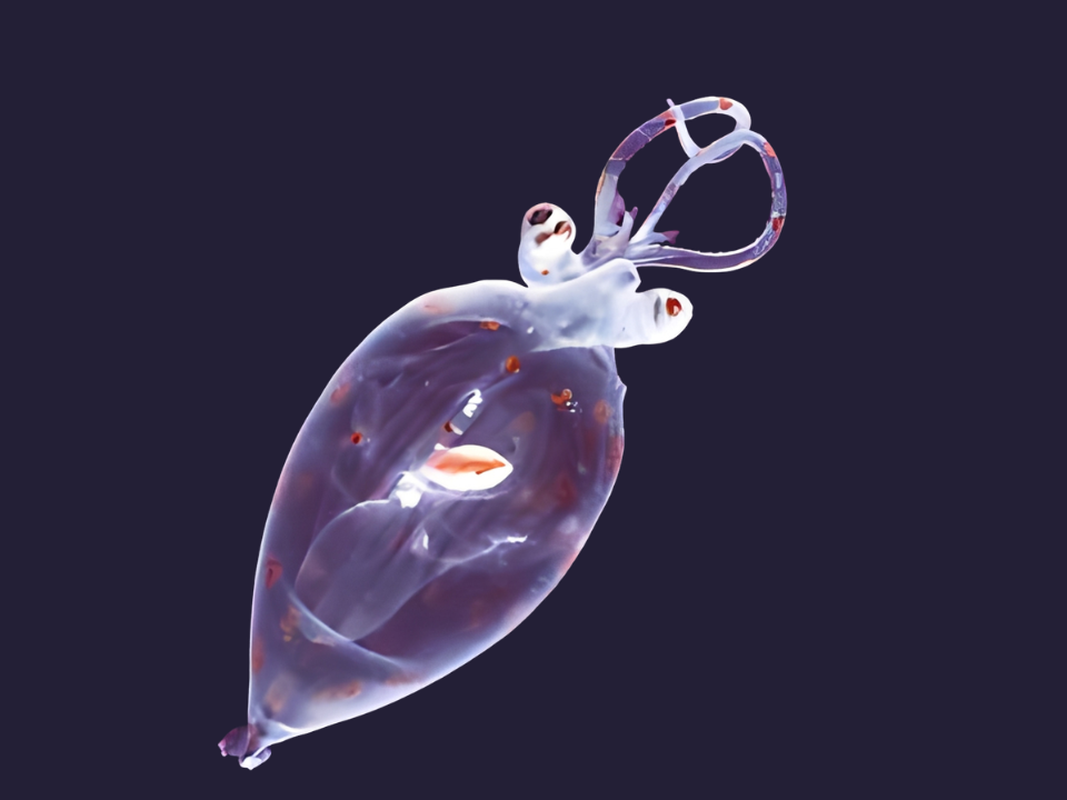 Le calmar en verre, comme son nom l’indique, a un corps presque transparent qui donne l’impression qu’il flotte dans l’espace. Ce calmar vit à des profondeurs d’environ 3 000 pieds, où le manque de lumière fait de sa transparence un trait essentiel de survie. Le calmar de verre utilise la bioluminescence pour l’aider à communiquer avec les autres et à attirer ses proies. Son apparence délicate et sa capacité à se fondre dans son environnement en font un habitant des grands fonds rare et insaisissable.