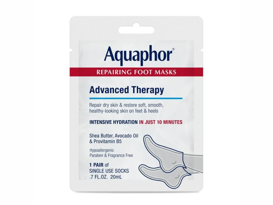 Les masques réparateurs pour les pieds Aquaphor sont un bon choix lorsque vous souhaitez un traitement plus rapide et moins salissant. Ils sont utiles pour les pieds qui semblent secs mais qui n’ont pas besoin d’une crème de nuit épaisse. Cela les rend pratiques avant un week-end ou n’importe quel jour où vos pieds seront plus visibles. Le style à enfiler les rend également faciles à utiliser à la maison.