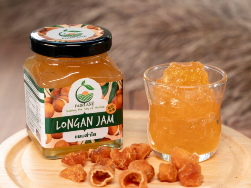 Le longane, souvent appelé « œil de dragon », est un petit fruit translucide originaire d’Asie du Sud-Est. Son goût légèrement sucré et floral rappelle le litchi mais en moins intense. La confiture de longane fait ressortir la délicate douceur du fruit, ce qui en fait un merveilleux complément à divers plats du petit-déjeuner.