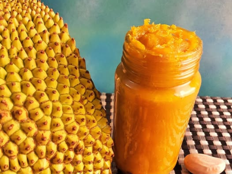Le jacquier, le plus gros fruit qui pousse sur les arbres, est connu pour sa saveur tropicale sucrée et sa texture fibreuse. La confiture à base de jacquier est épaisse et légèrement épaisse, avec une douceur distinctive. La saveur du fruit est souvent décrite comme un mélange de banane, d’ananas et de mangue, donnant à la confiture un goût riche et tropical.