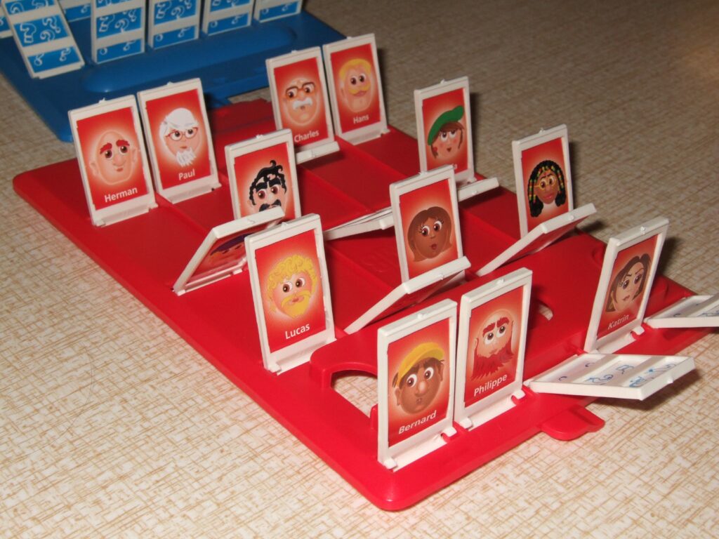 Devinez qui ? est un jeu de devinettes à deux joueurs dans lequel les joueurs tentent de découvrir l’identité du personnage adverse en posant des questions par oui ou par non. La simplicité du jeu fait partie de son charme, ce qui le rend parfait pour jouer en famille avec de jeunes enfants. La clé du succès consiste à poser les bonnes questions pour éliminer les possibilités, ce qui rend le jeu engageant et amusant. Devinez qui ? est un jeu rapide qui procure beaucoup de rire sans prendre trop de temps.