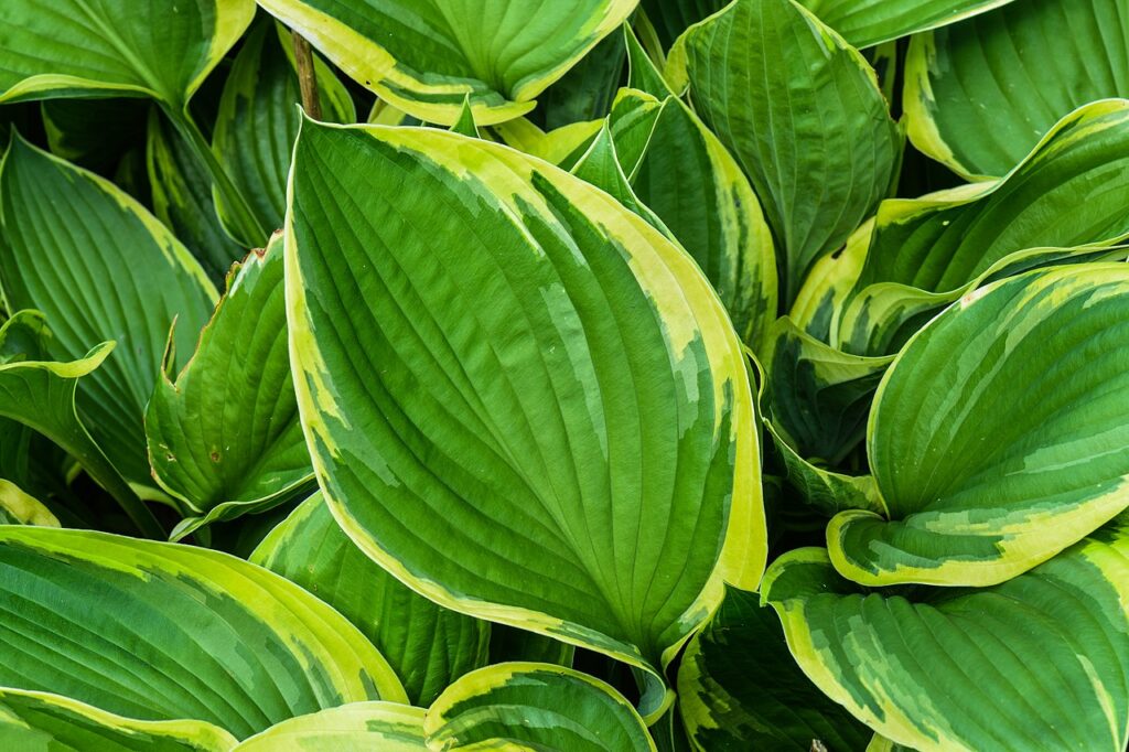 Les hostas sont célèbres pour leurs feuilles qui peuvent être énormes, nervurées, bleu-vert, dorées ou bordées de blanc crème. Au printemps, les premières feuilles se dressent comme des lances enroulées et s’ouvrent lentement en touffes larges et pleines qui donnent l’impression que les plates-bandes sont plantées à la hâte. Cette première étape de déploiement fait partie de l’attrait car elle donne au jardin une impression d’élan. Certaines variétés sont lisses et brillantes, tandis que d’autres ont des feuilles plissées ou matelassées qui ajoutent une texture supplémentaire.