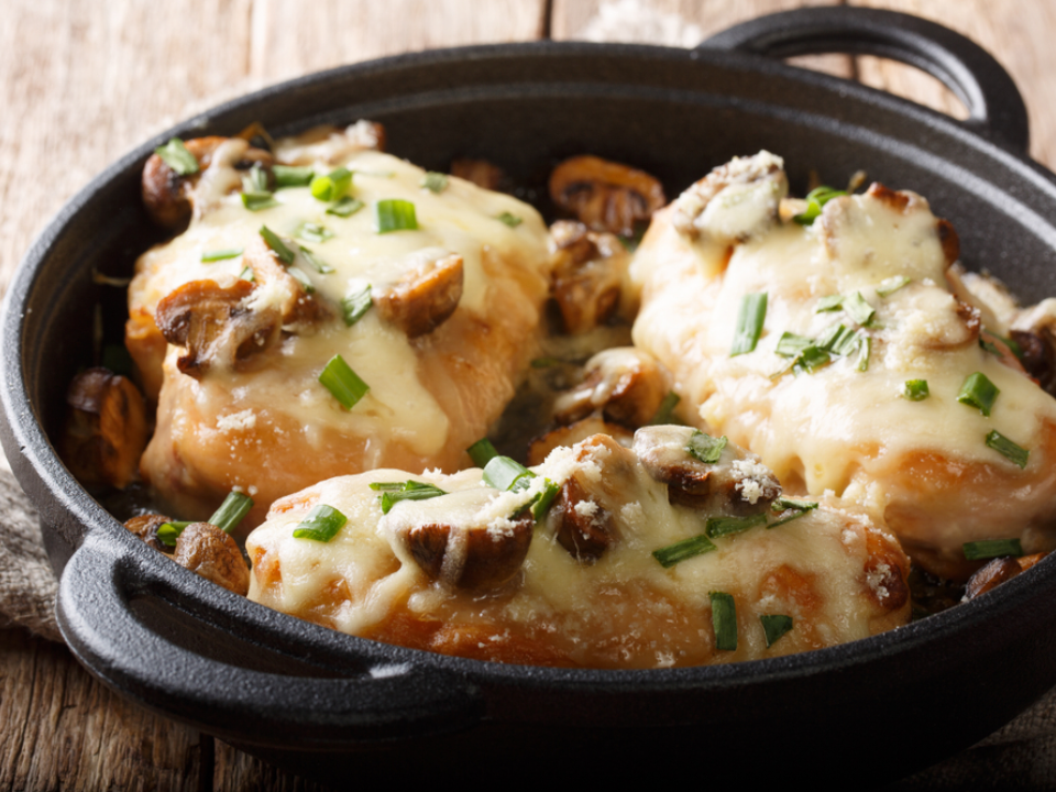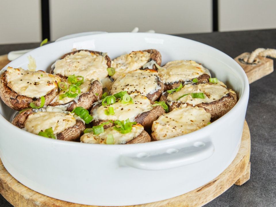 Retirez les tiges de 24 gros champignons et hachez-les finement. Mélangez les tiges avec 1 tasse de fromage à la crème, 1 quart de tasse de chapelure et 1 quart de tasse de parmesan râpé. Remplissez les chapeaux de champignons et placez-les sur une plaque à pâtisserie. Couvrir et réfrigérer toute la nuit. Cuire au four à 375 degrés Fahrenheit pendant 20 minutes jusqu’à ce qu’ils soient légèrement dorés.
