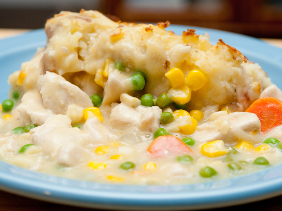 Mélangez 2 tasses de poulet cuit en dés avec 1 tasse de légumes mélangés surgelés et 1 boîte de soupe à la crème. Répartir dans un plat allant au four. Garnir de morceaux de pâte à biscuits préparés. Couvrir et réfrigérer toute la nuit. Cuire au four à 375 degrés Fahrenheit pendant 35 minutes jusqu’à ce qu’ils soient dorés.