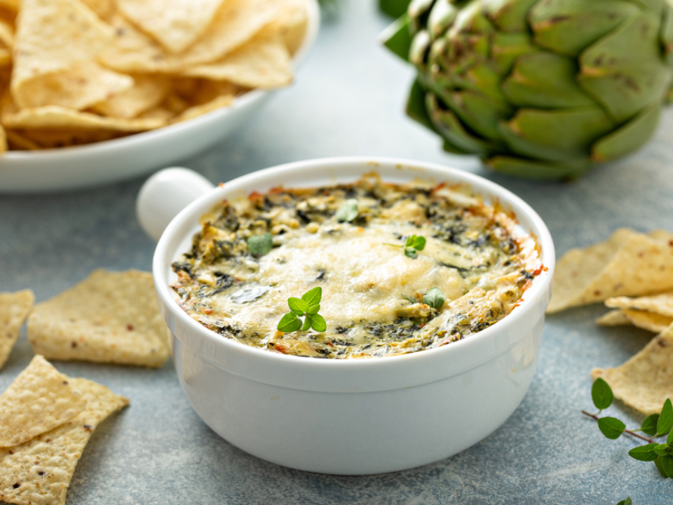 Mélangez 1 tasse de fromage à la crème, 1 tasse de crème sure, 1 tasse d’épinards hachés et 1 tasse d’artichauts hachés. Incorporer 1 tasse de mozzarella râpée. Répartir dans un plat allant au four et couvrir. Réfrigérer toute la nuit. Cuire au four à 375 degrés Fahrenheit pendant 25 minutes jusqu’à ce que cela bouillonne.