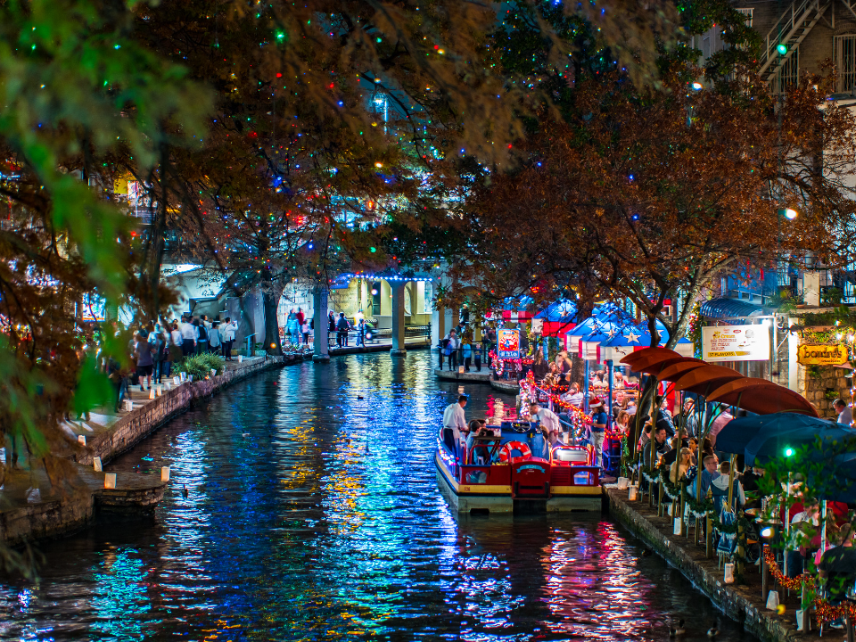 San Antonio, au Texas, embrasse la période des fêtes avec ses magnifiques lumières River Walk et ses célébrations festives. Le Holiday River Parade et la cérémonie d’éclairage donnent le coup d’envoi de la saison, où des lumières colorées illuminent la voie navigable emblématique. Le River Walk est bordé de cafés, de boutiques et de bateaux, ce qui en fait un lieu de promenade pittoresque et festif.