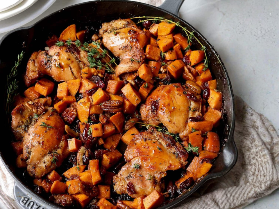 Pour un repas chaud et réconfortant, ce plat dans une seule poêle a toutes les bonnes notes. Le poulet et les patates douces cuisent ensemble, permettant aux saveurs de se mélanger. Il est idéal pour le dîner lors des soirées plus fraîches ou lorsque vous avez envie de quelque chose de copieux mais facile. Ce plat sera prêt en 35 minutes environ.