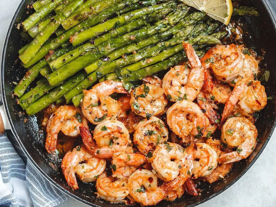 Ce repas rapide regorge d’ail et de saveurs fraîches, le tout cuit dans une seule poêle. Avec les crevettes et les asperges comme ingrédients vedettes, il est à la fois nutritif et facile à nettoyer. Il est parfait pour un repas sans effort et très gratifiant et est prêt en 20 minutes environ. La sauce à l’ail et au parmesan rassemble le tout à merveille.