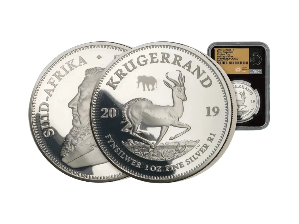 Le Krugerrand sud-africain est l’une des pièces d’or les plus célèbres et les plus recherchées au monde. En 2019, la série Krugerrand a sorti une édition spéciale mettant en scène un éléphant, l’un des animaux les plus majestueux et les plus menacés du continent. La pièce est frappée en or 22 carats et pèse 1 once.