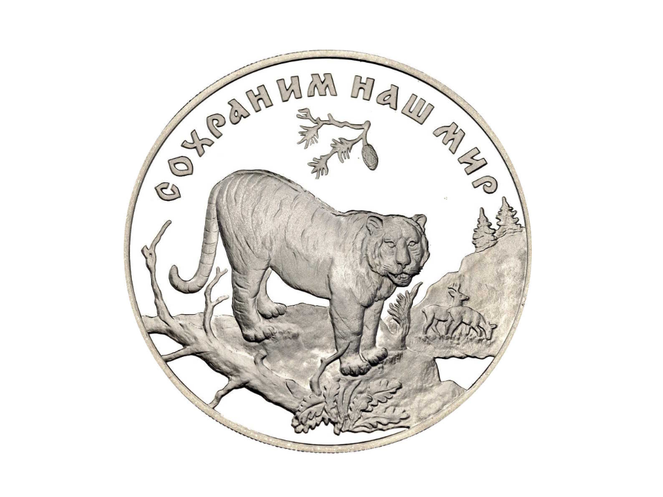 Cette pièce fait partie d’une série qui célèbre les espèces menacées de Russie, le tigre de Sibérie étant l’une des espèces les plus emblématiques et les plus gravement menacées. Le motif détaillé au revers de la pièce capture les caractéristiques majestueuses du tigre, ce qui en fait un ajout souhaitable à toute collection sur le thème de la faune. La valeur marchande estimée de la pièce est d’environ 50 dollars en raison de sa teneur en argent et de son statut de pièce rare.