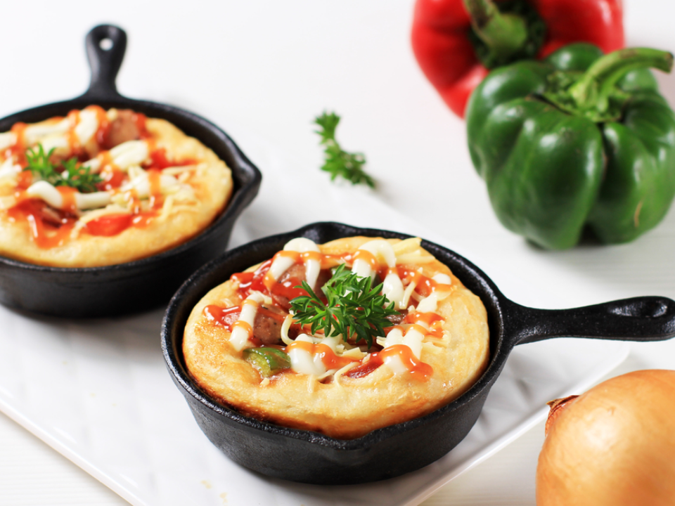 Préchauffer le four à 375 degrés Fahrenheit et graisser un moule à muffins de 12 tasses. Mélangez 1 tasse et demie de farine, 1 cuillère à café et demie de levure chimique et une pincée de sel, puis ajoutez 1 tasse de lait, 1 œuf et 2 cuillères à soupe d’huile d’olive. Incorporez 1 tasse de mozzarella râpée, 1 demi-tasse de mini pepperoni haché, 1 tiers de tasse de poivron finement haché, versez dans les tasses et faites cuire au four 15 à 18 minutes jusqu’à ce que le dessus devienne doré.