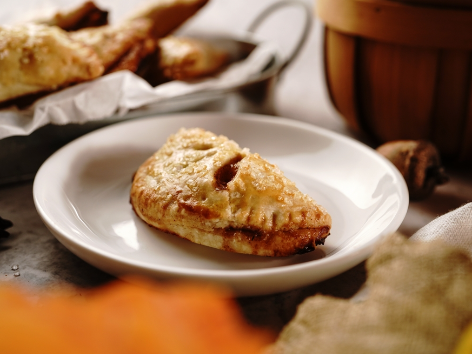 Préchauffer le four à 375 degrés Fahrenheit et tapisser une plaque à pâtisserie de papier sulfurisé. Mélangez 2 pommes pelées et finement hachées avec 2 cuillères à soupe de sucre, 1 cuillère à café de cannelle et 1 cuillère à café de farine. Étalez la pâte à tarte, coupez des cercles de 4 pouces, ajoutez une cuillerée de garniture aux pommes, pliez, sertissez, coupez une petite fente de vapeur, badigeonnez d’œuf battu, saupoudrez de sucre et faites cuire au four 18 à 22 minutes jusqu’à ce qu’elle soit dorée.