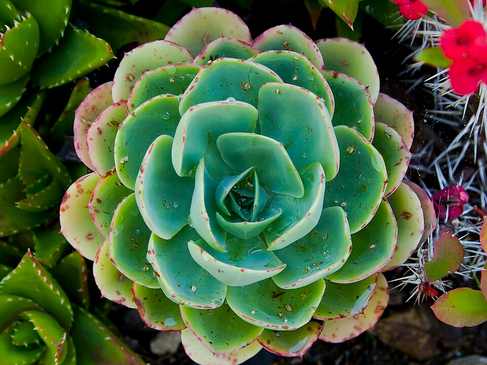 Echeveria est un genre de plantes succulentes formant des rosettes appréciées pour leurs feuilles charnues et colorées. Ils ont besoin d’une lumière vive et indirecte, mais doivent être réintroduits progressivement dans une lumière solaire plus directe. Une exposition soudaine à un soleil intense peut provoquer des brûlures des feuilles, il est donc important de laisser à la plante le temps de s’adapter.