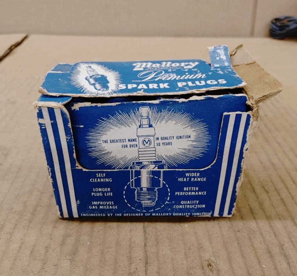 Cette ancienne boîte à bougies d’allumage Mallory, datant des années 1960, représente une période où les fabricants de bougies d’allumage du marché secondaire étaient des fournisseurs courants pour de nombreux propriétaires de véhicules. Ce qui donne aujourd’hui de la valeur à cette boîte de collection, c’est la rareté relative de l’emballage Mallory intact par rapport aux marques plus dominantes et le design graphique rétro typique de cette époque. Lorsqu’elles sont en bon état, ces boîtes se sont récemment vendues entre 120 et 220 dollars. Les collectionneurs qui privilégient les accessoires automobiles du milieu du siècle les recherchent souvent pour leurs collections.