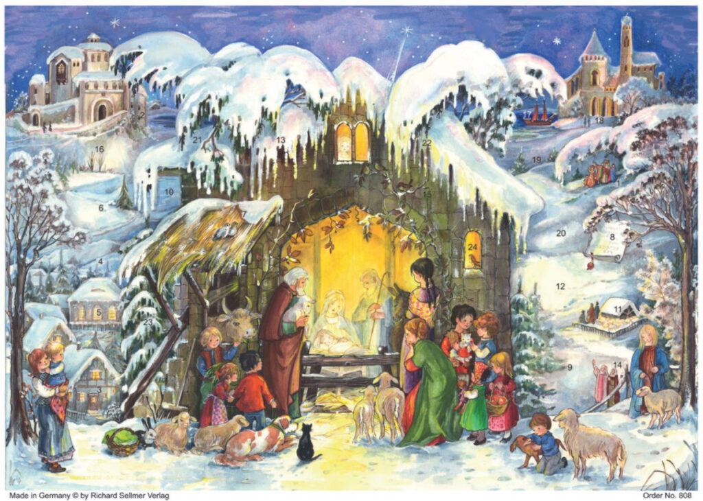 Sorti dans les années 1920, ce calendrier est centré sur l’histoire de la Nativité à travers des fenêtres illustrées. Il a été imprimé sur du papier solide destiné à durer plusieurs saisons. Les prix actuels du marché varient souvent entre 1 500 et 3 500 dollars. Les collectionneurs apprécient les œuvres d’art détaillées et les images traditionnelles. De nombreux exemplaires ont été soigneusement conservés, ce qui explique que certains restent en bon état.