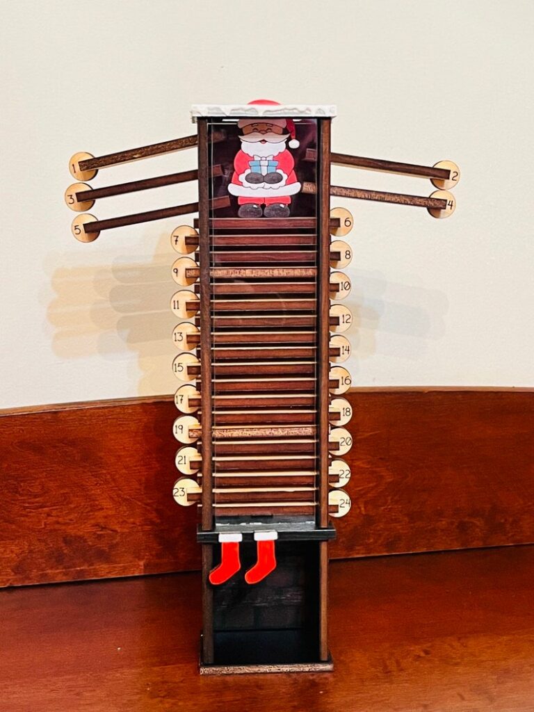 Produit dans les années 1960, ce calendrier suit une courte histoire de vacances à travers ses portes. Chaque fenêtre ajoute au récit. Les prix actuels se situent souvent entre 200 et 500 dollars. Les collectionneurs apprécient l’aspect narratif interactif. C’était populaire parmi les familles avec de jeunes enfants.