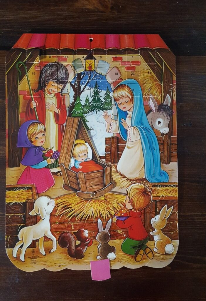 Produit dans les années 1970, ce calendrier s’ouvre sur une crèche en trois dimensions. Il allie ingénierie du papier et tradition. Les valeurs actuelles varient de 350 $ à 900 $. Les collectionneurs apprécient la profondeur et la structure supplémentaires. Ces calendriers étaient plus délicats que les modèles plats.
